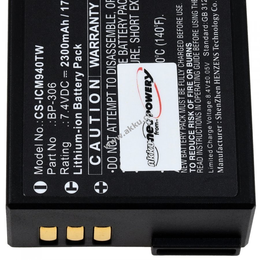 Akku passend für Icom IC-M94D IC-M94DE Funkgerät Typ BP-306