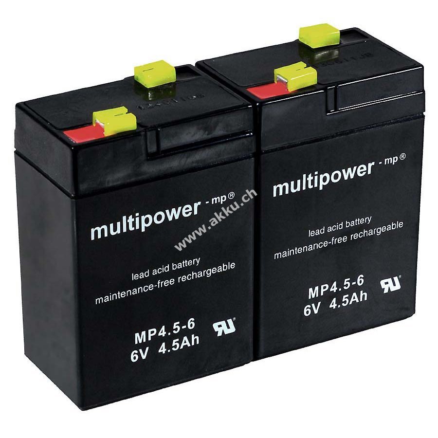 6V4,5Ah/27WhLead-AcidSchwarz70mm x 47mm x 107mmMultipowerSet bestehend aus 2 Bleiakkus! Akku auch einzeln bei uns erhältlich.
