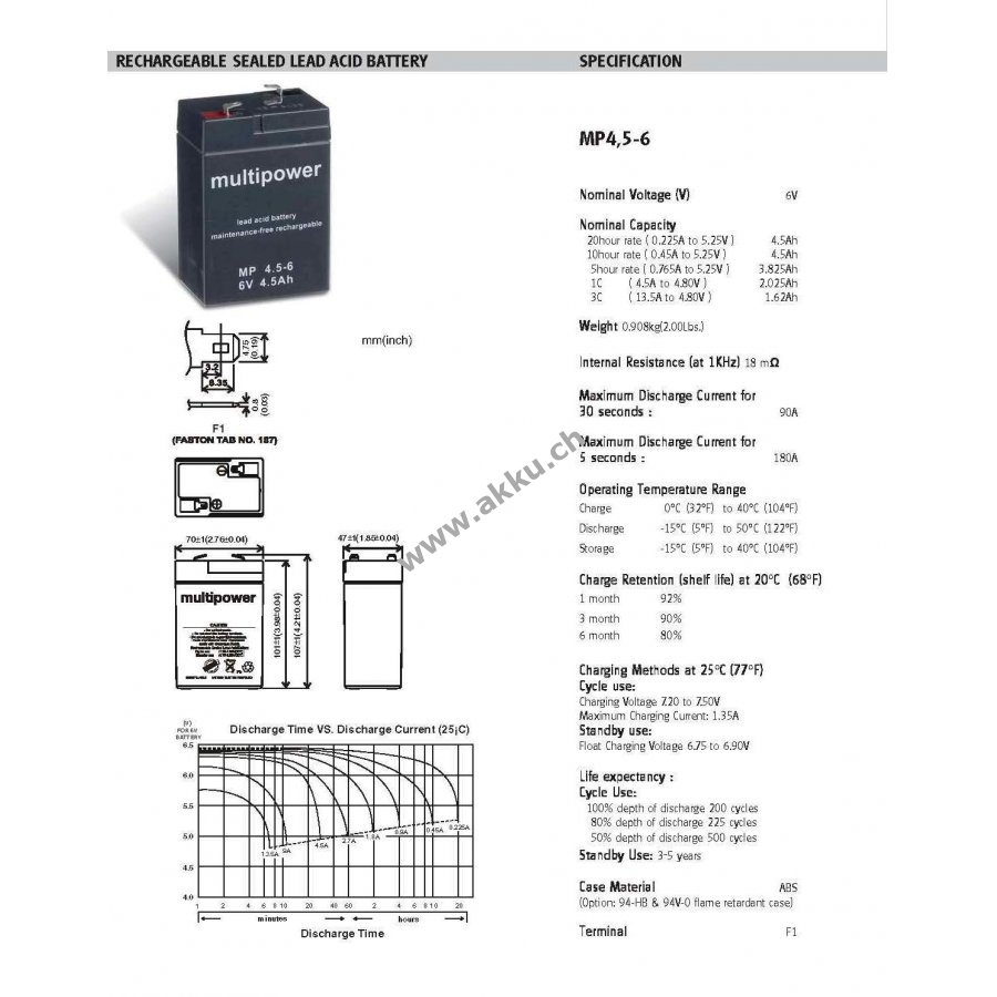 6V 4,5Ah/27Wh Lead-Acid Schwarz 70mm x 47mm x 107mm Multipower