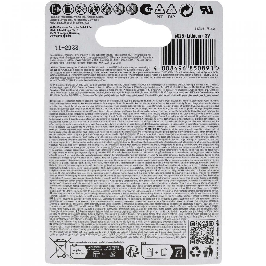 Varta Lithium Knopfzelle CR2025 DL2025 5er Blister