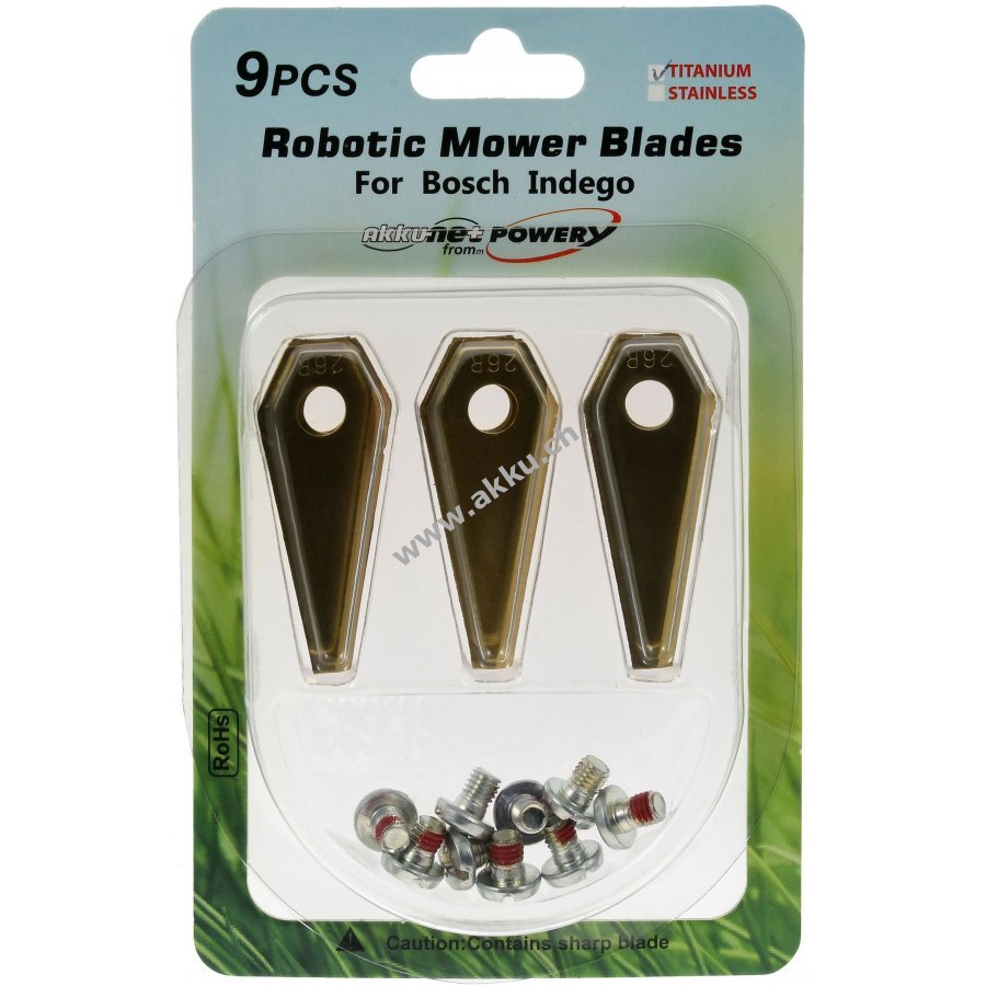 9x Ersatz-Messer Titan Klingen / Schneid-Klingen (1mm) für Bosch Indego Mähroboter Gold